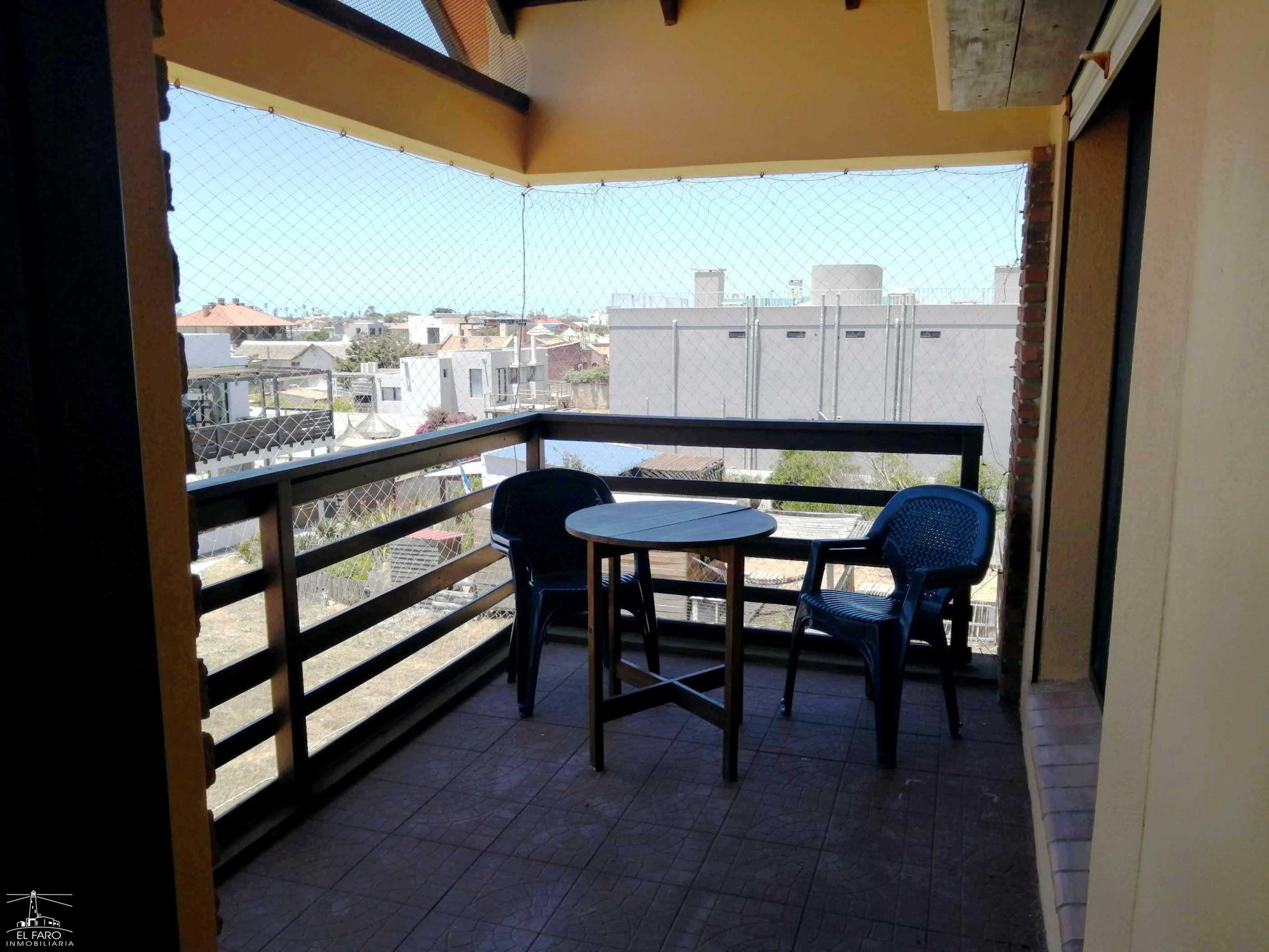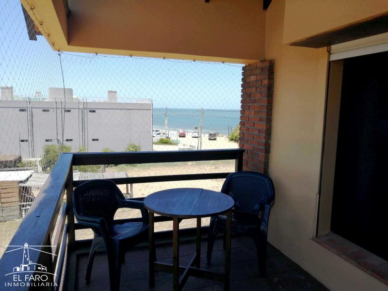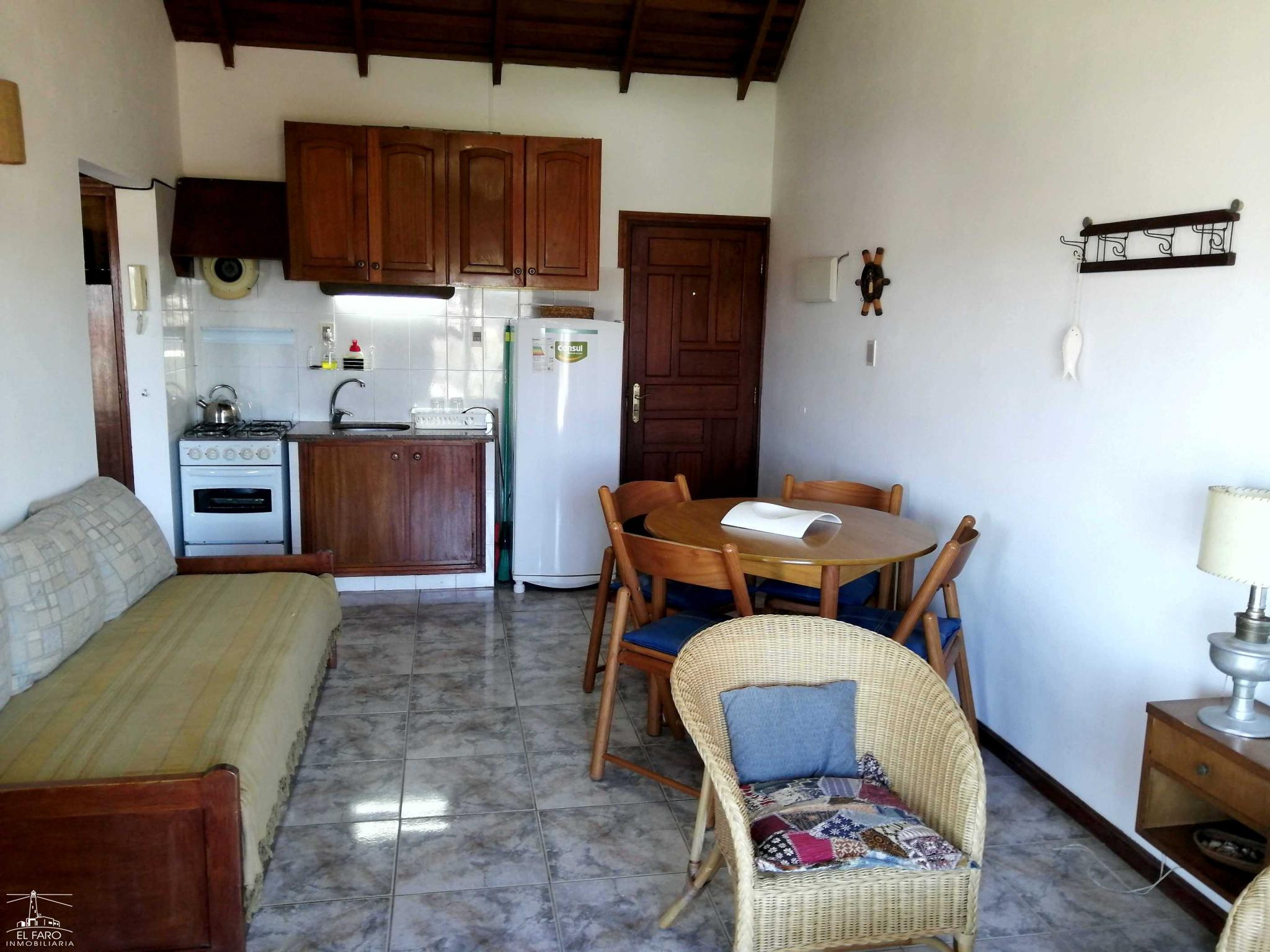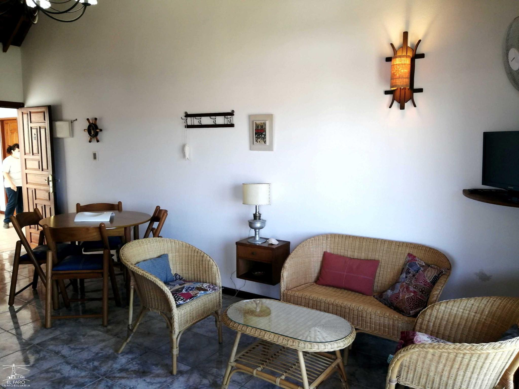 Living comedor integrado a la cocina. Puerta ventana del living a terraza con vista lateral al mar.