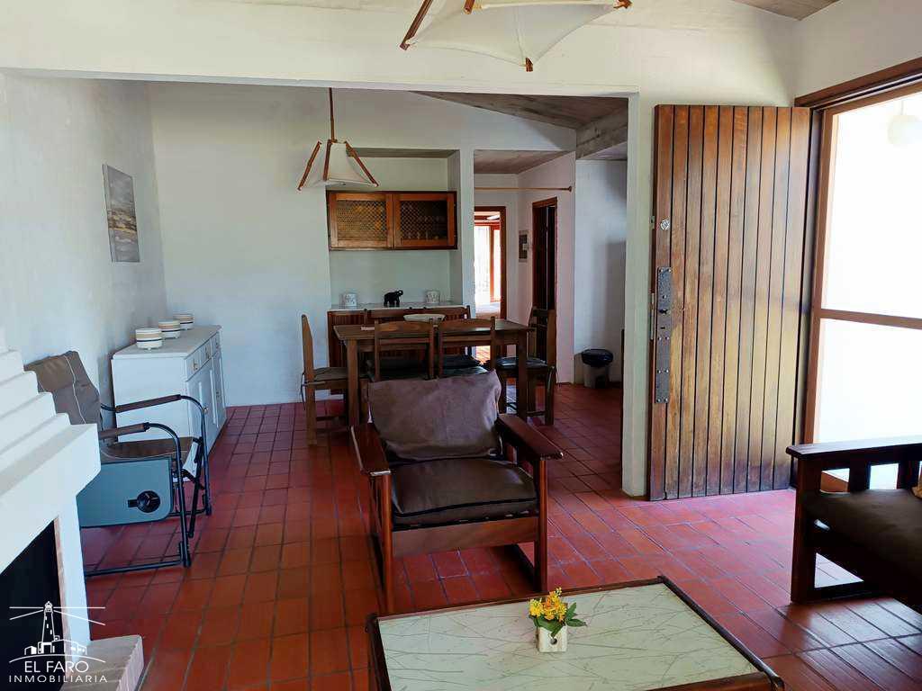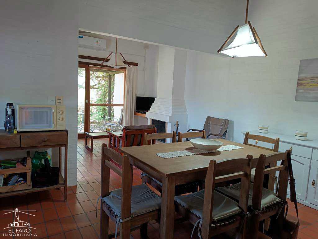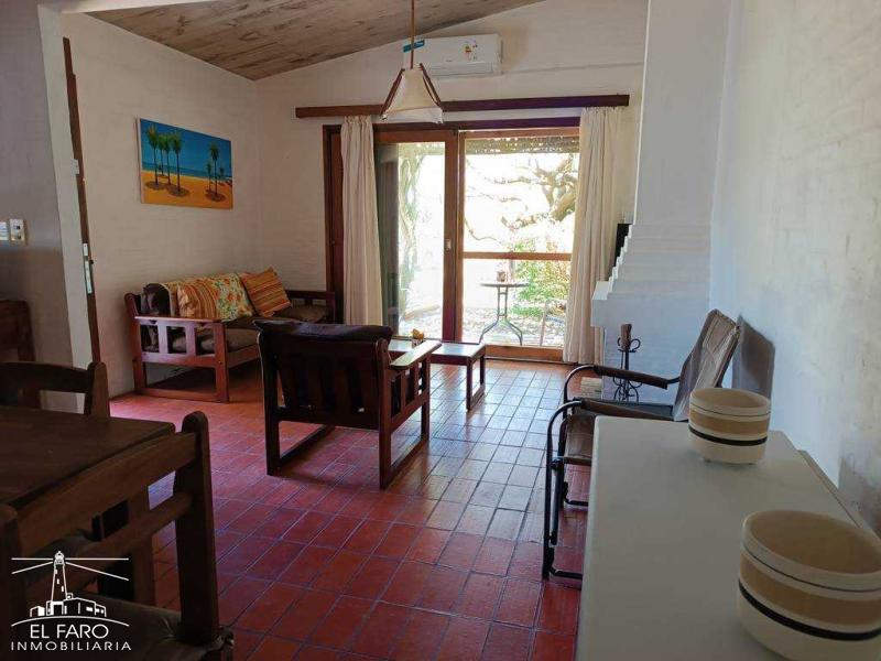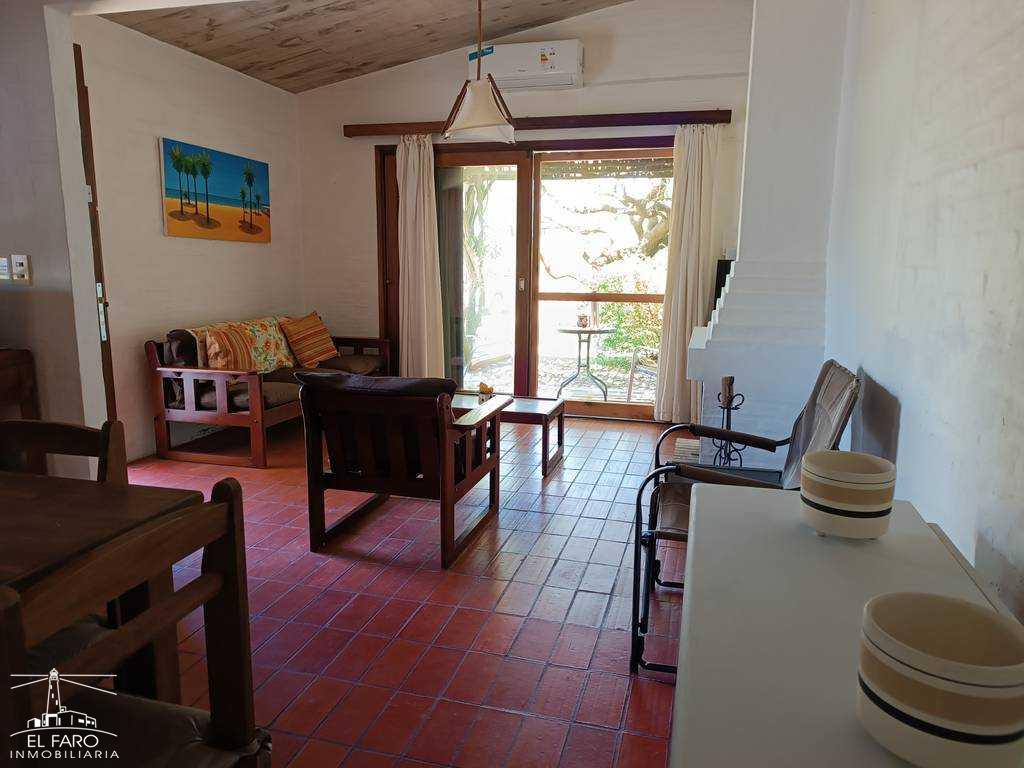 Living comedor con la cocina integrados, con puerta ventana a terraza con pérgola sombreada.