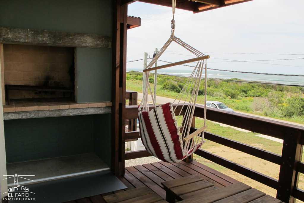 Terraza con vista al mar, con parrillero, reposera mesa y bancos.