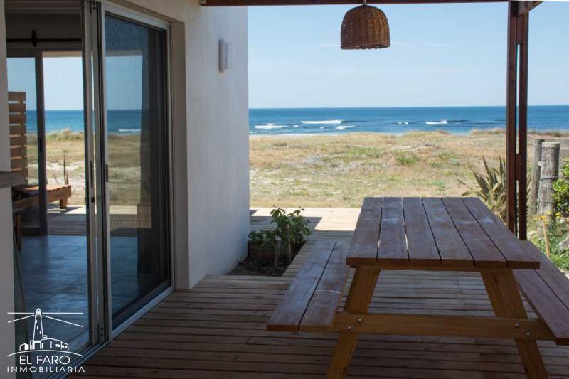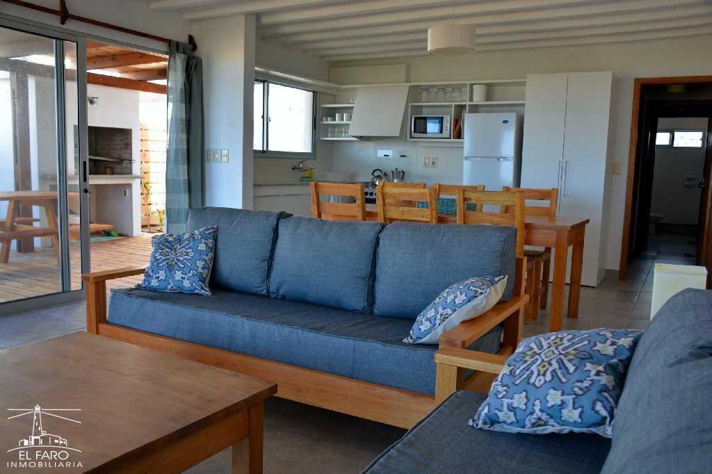 Casa sobre el mar de moderna arquitectura, en agradable entorno, con adecuada independencia del mar y de la calle. Vistas al mar desde el living, dormitorio matrimonial y parrillero.