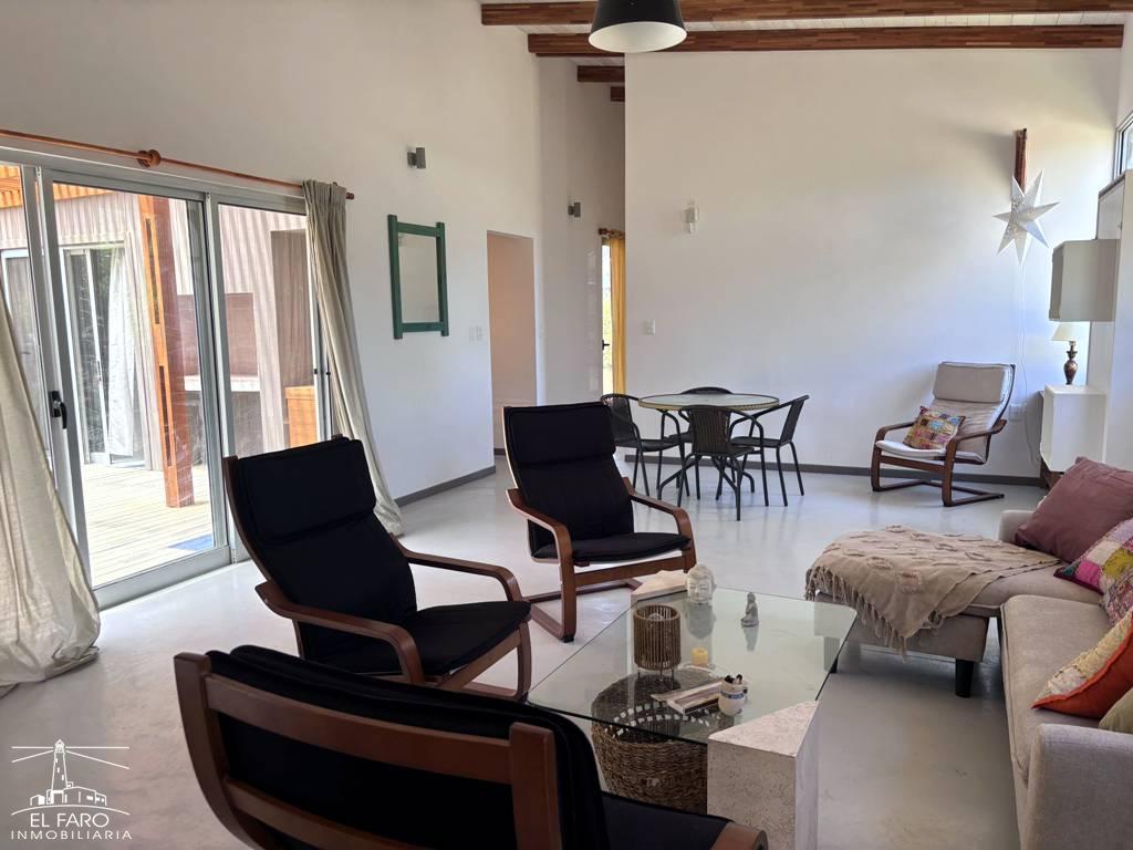 Amplio living comedor con puerta ventana al deck.