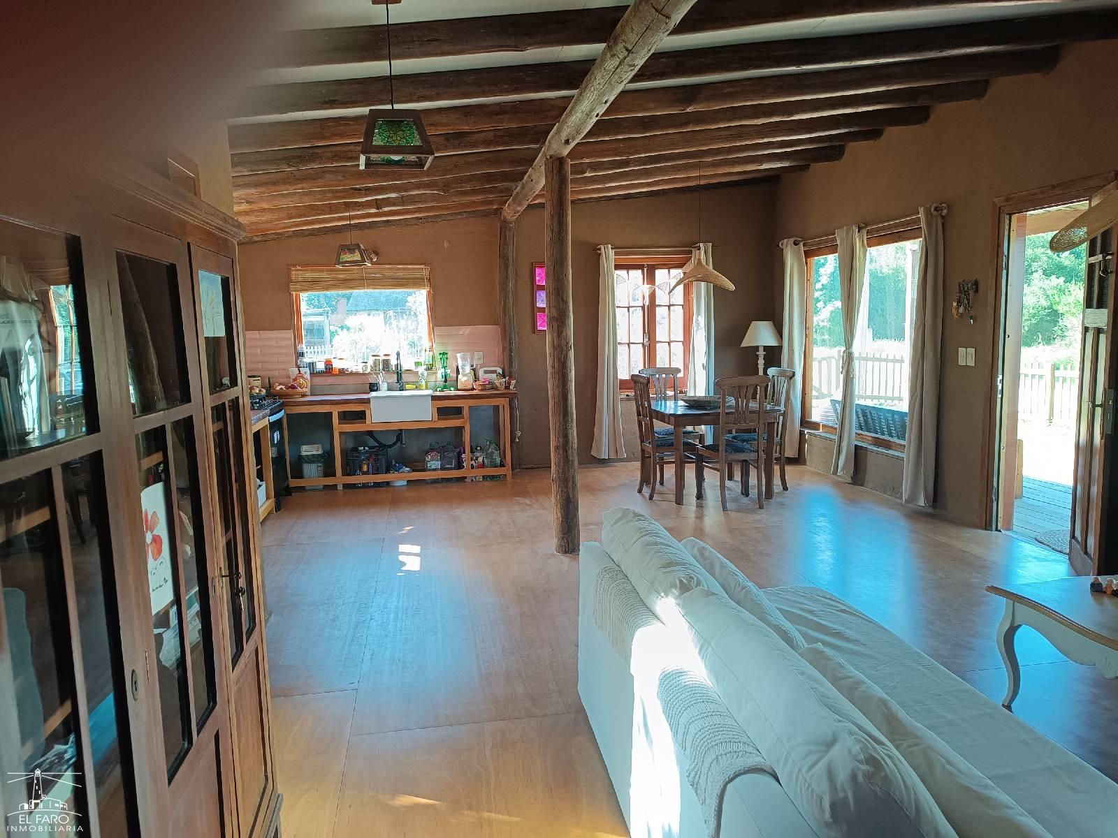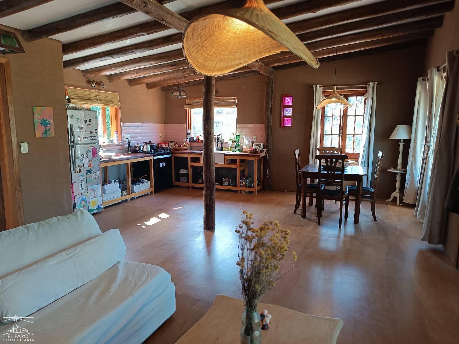 Amplio living comedor con la cocina integrada. Puerta ventana con salida al jardín.