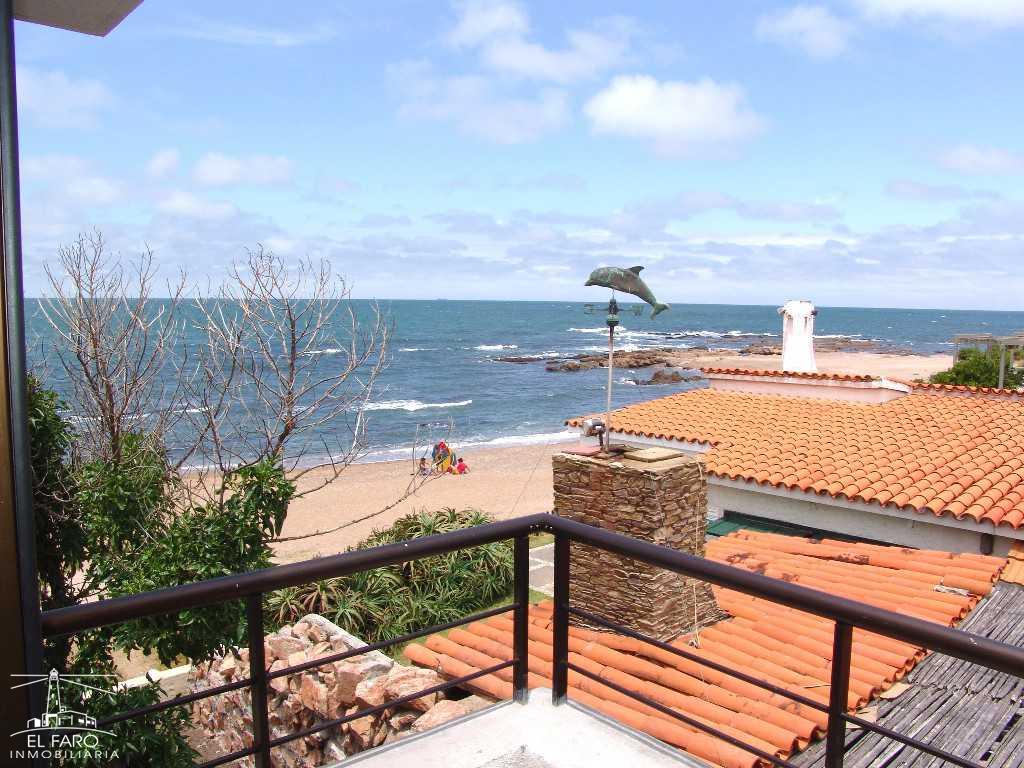 Amplio living comedor con 2 puertas ventanas a terraza al mar.