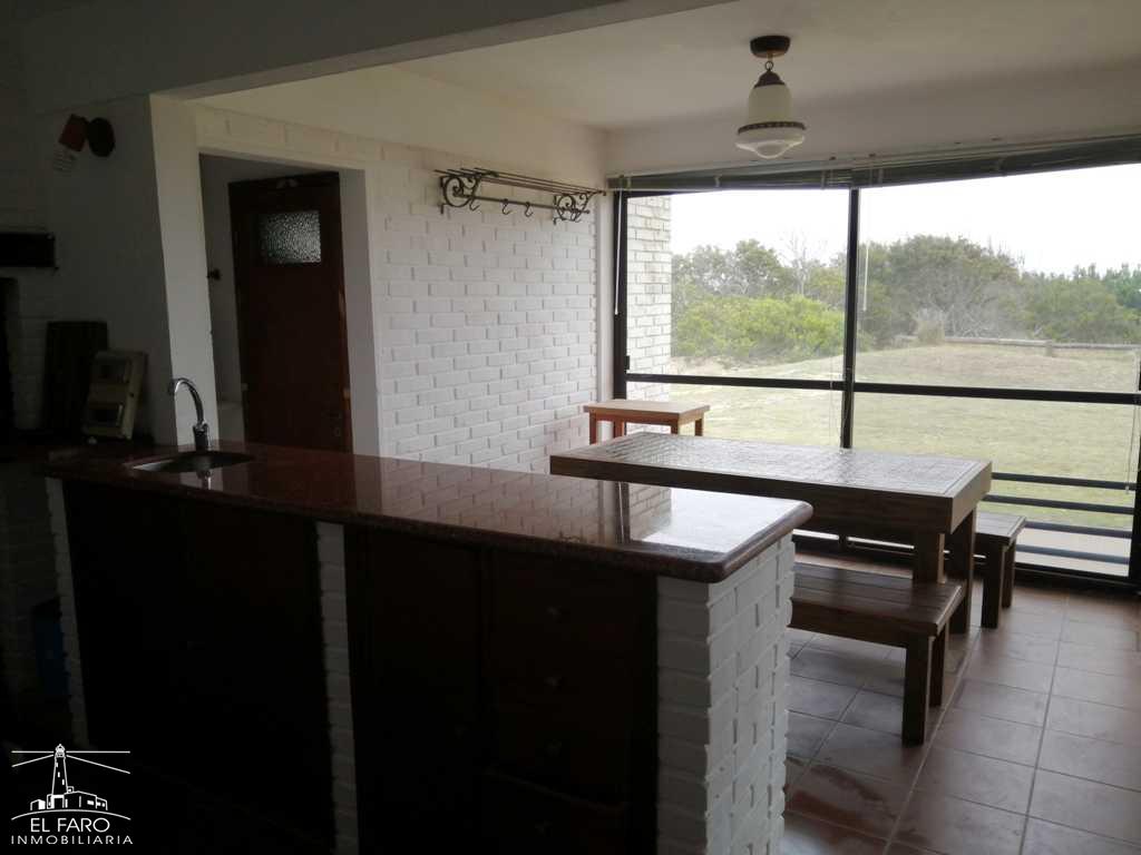 Buena casa sobre la Bahía Grande, con amplio jardín al mar.