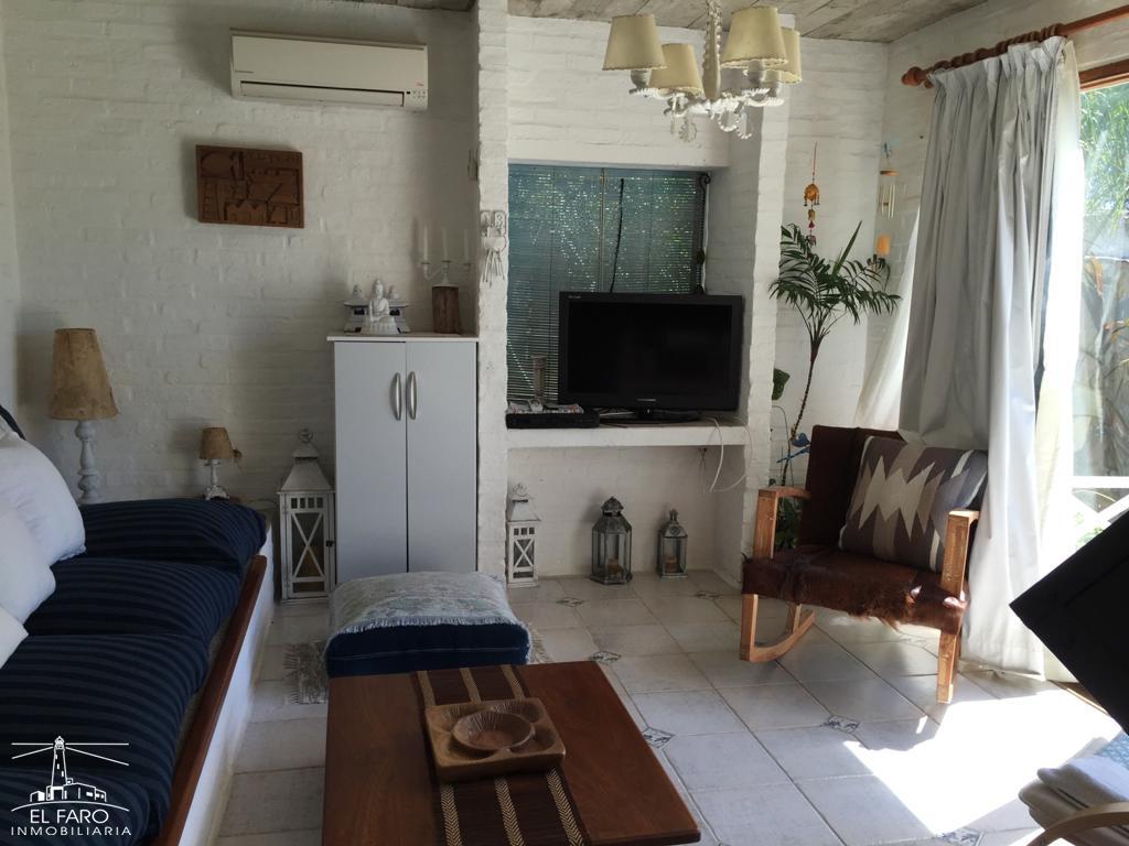 Coqueta, de agradable arquitectura, construida en L, todo en un ambiente y en desniveles, que definen distintos espacios: dormitorio, cocina comedor y living.