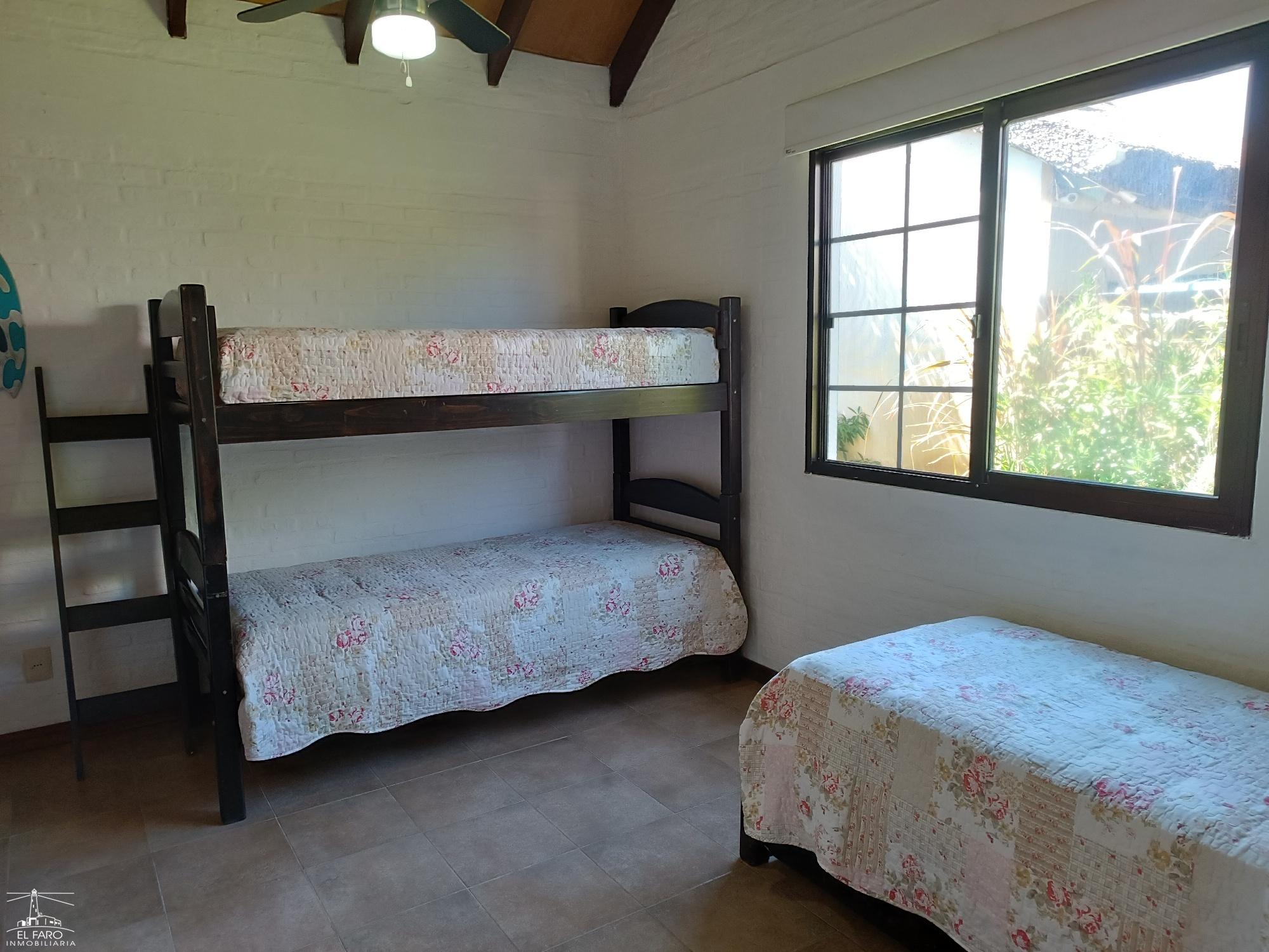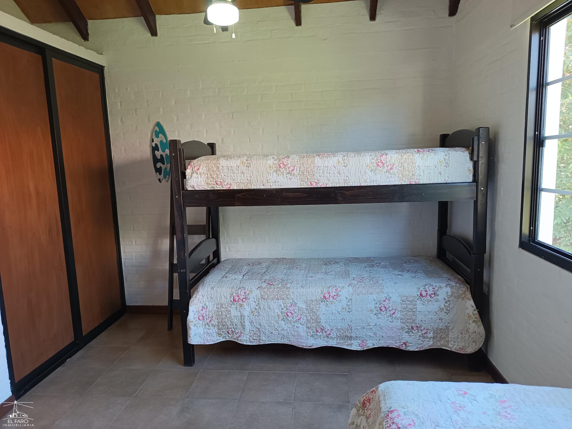 Dormitorio matrimonial, otro con cucheta y una cama individual, futon en el living.