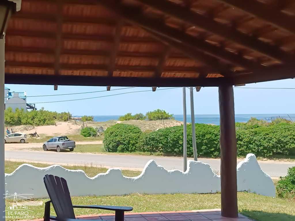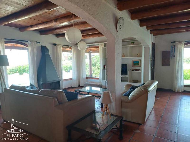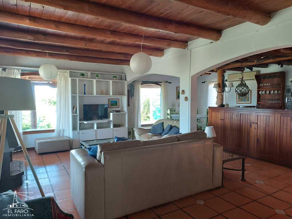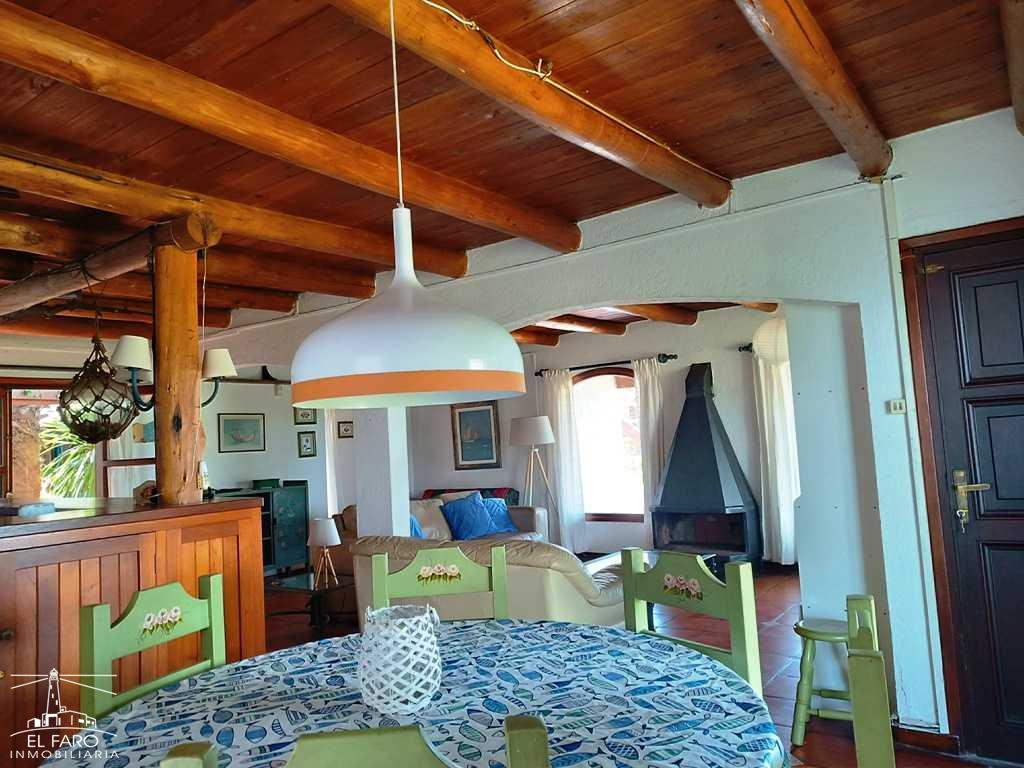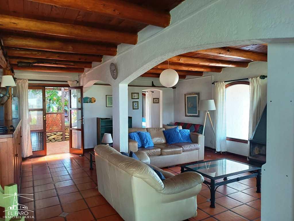 Living comedor y cocina integrados. El living con baranda con vista al mar.