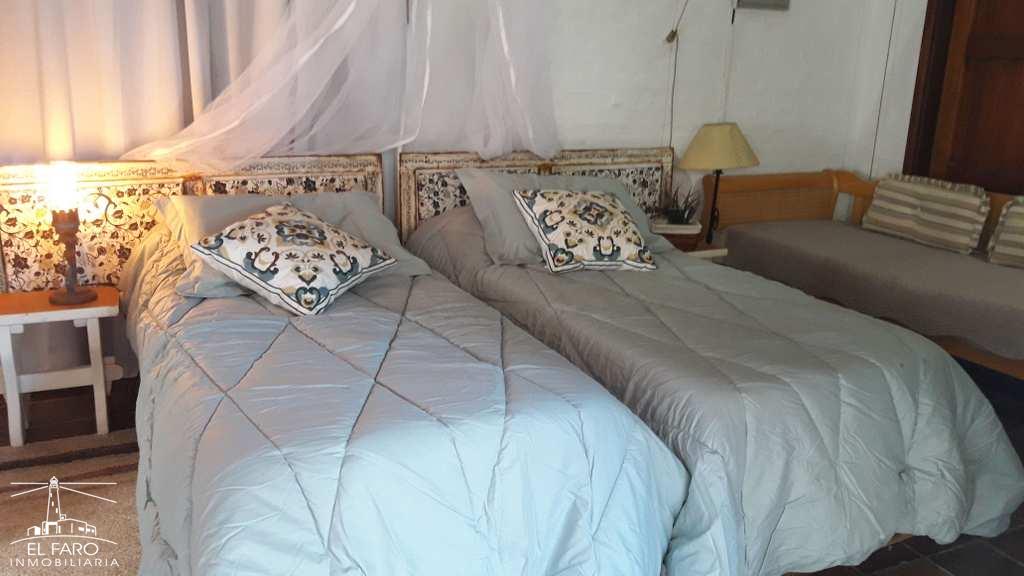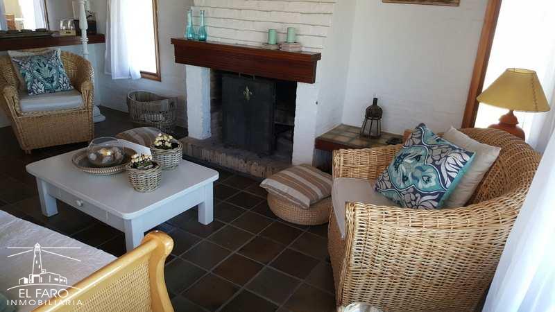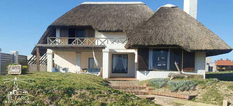 Sobre el mar, casa en 2 plantas con techo quinchado. 3 dormitorios y apartamento al fondo.