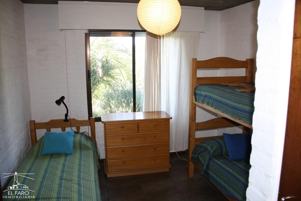 Baño y dos dormitorios: uno con 2 camas individuales y el otro con una cama individual y una cucheta.