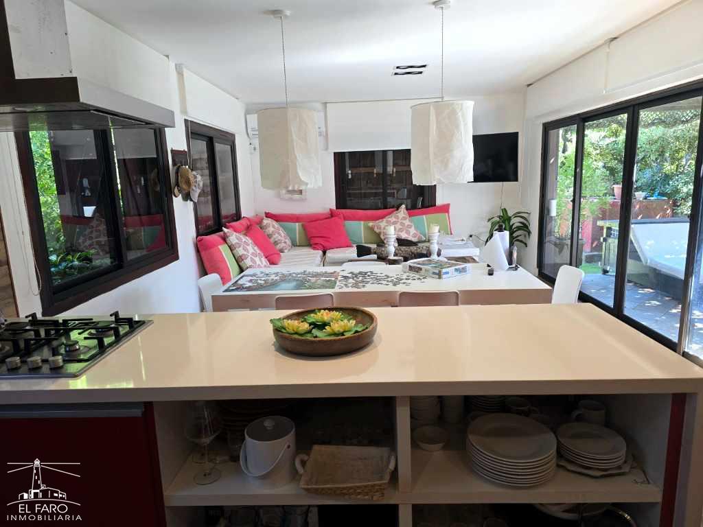Living comedor con la cocina integrada, por corredor de distribución se accede a tres dormitorios. Todos estos ambientes con puertas ventanas al jardín.
