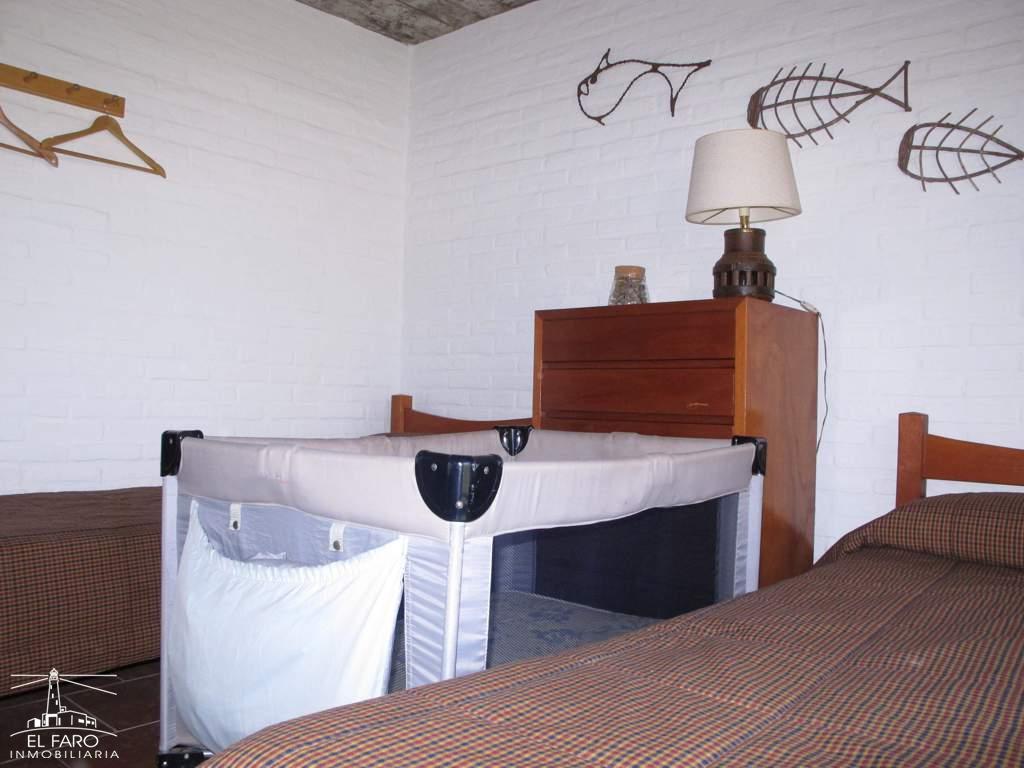 Se desarrolla en 2 plantas; en planta baja living comedor con la cocina integrada, puerta ventana a jardín con sombra de pinos. Dos dormitorios con dos camas individuales cada uno, baño.