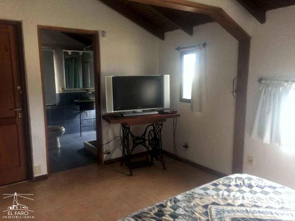 En planta baja, cocina con pasa platos al living comedor. Puerta ventana al fondo a alero con parrillero. Dormitorio con cama individual y cucheta, baño.