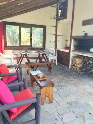 Cabaña amplia y espaciosa, a 250 mts de la playa. Jardín cercado, cañada al fondo. Parrillero.