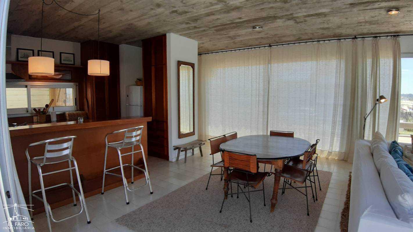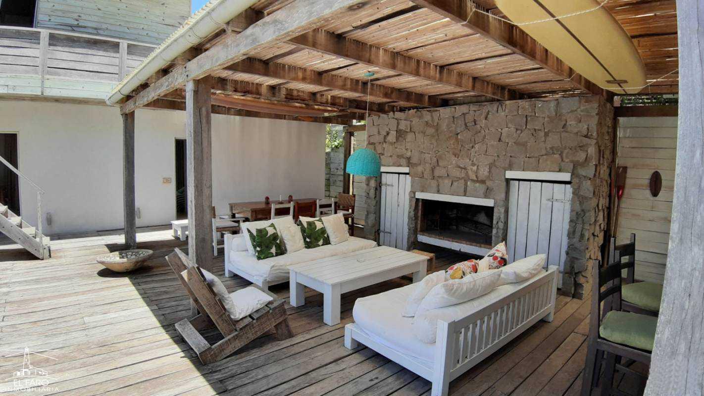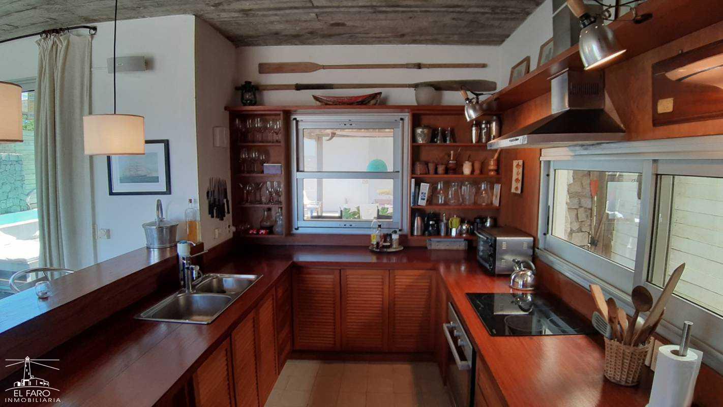 En el módulo al frente de la casa en planta baja hay un amplio living comedor con la cocina integrada, con estufa a leña, y toilette, con amplias puertas ventanas tanto al frente con vistas al mar, como al patio interior intergrando ambos ambientes.